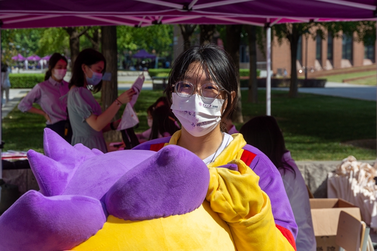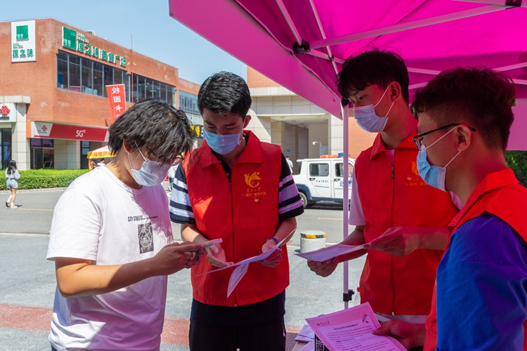 Sun Zeyao, an undergraduate student of the College of Electronic Information and Optical Engineering enrolled in 2020, came to the "one-stop" student service community early to provide volunteering service.